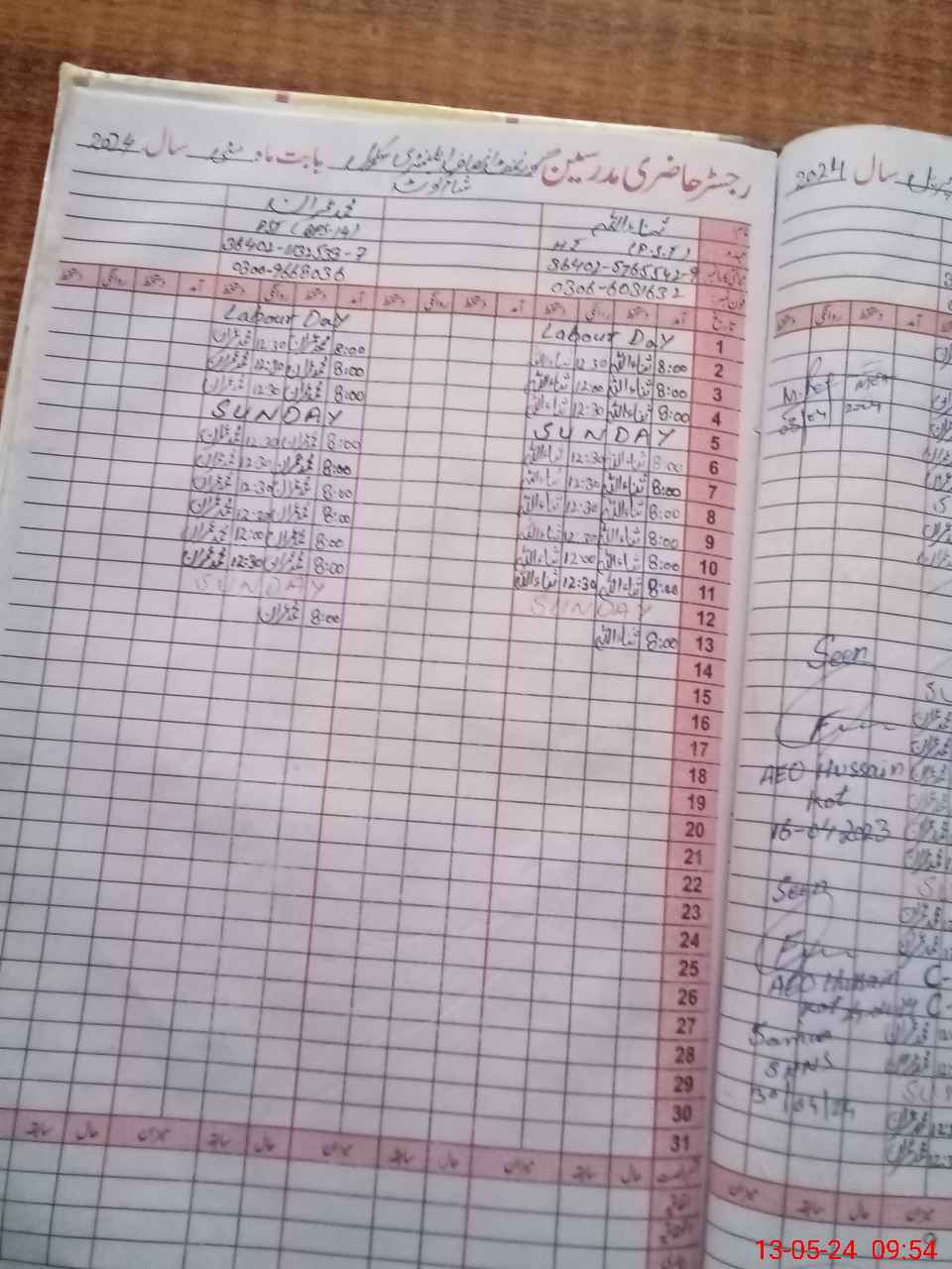 | CNIC | Full Name | Designation | R/C | Absence During Last Calender Month |