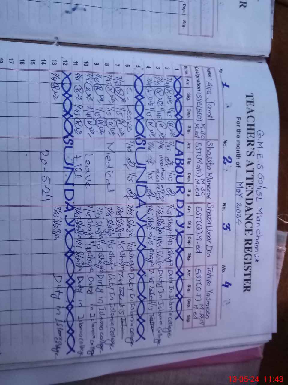 | 36**** | Ta**** Ya**** | Regular | 1 | 20 | 0 | 0 | 0 | 0 | 0 | 0 | 1 | Exam Duty | |