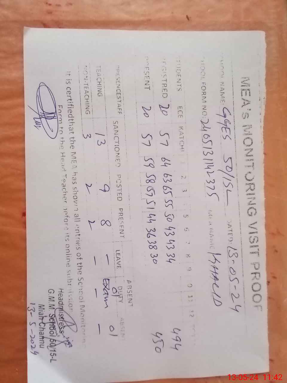 | EMIS Code: 36430098 | Name of School: GGES 50/15-L, MIAN CHANNU | |||