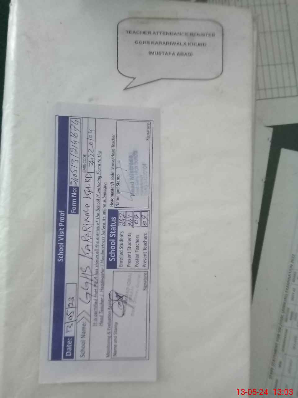 | EMIS Code: 34220104 | Name of School: GGHS KARARI WALA KHURD | |||