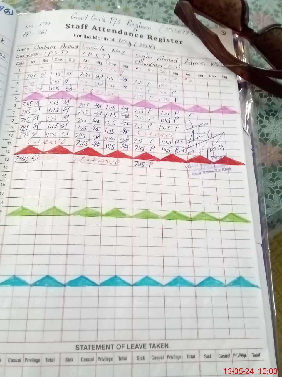 | Leave | Duty | Absent | Maternity | Medical | Ex- Pak |
