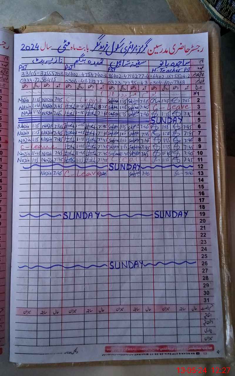 | CNIC | Full Name | Designation | R/C | Absence During Last Calender Month |
