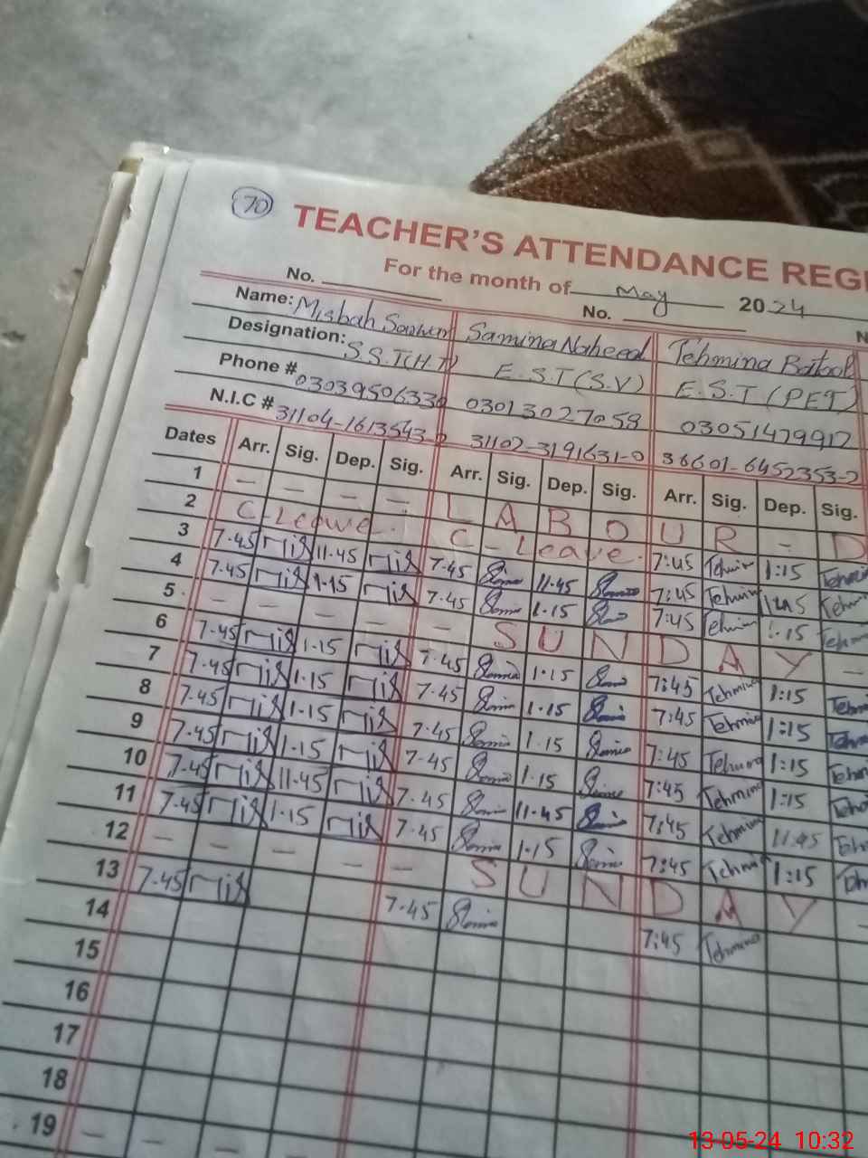 | Remarks (Use Separate Page if Required): Roznamcha is not telly with students attendance registers | |||||