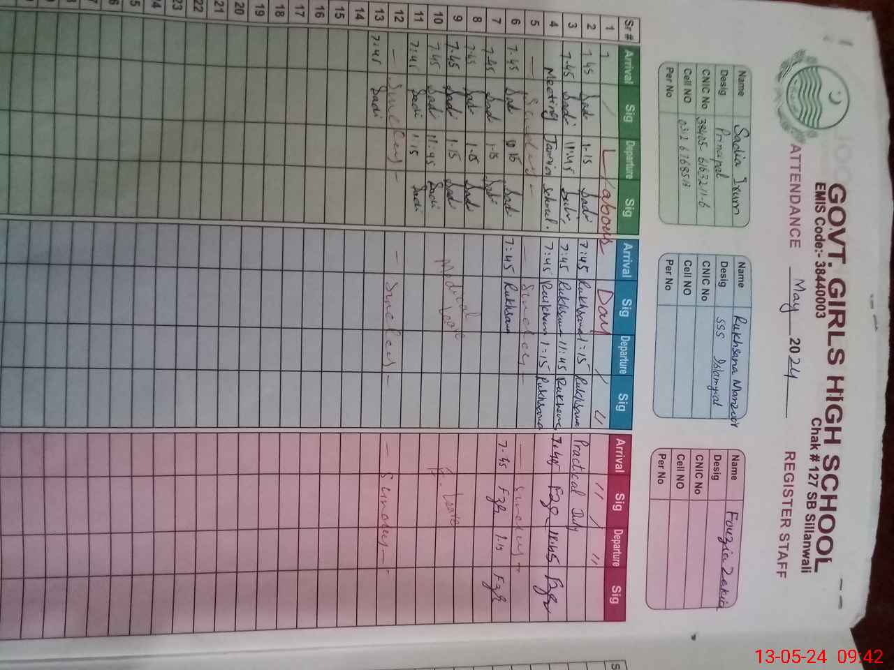 | Name: SA**** IR**** Designation: (School Headmaster's/Headmistress's) I/C PRINCIPAL Phone/Cell Number: 03**** |