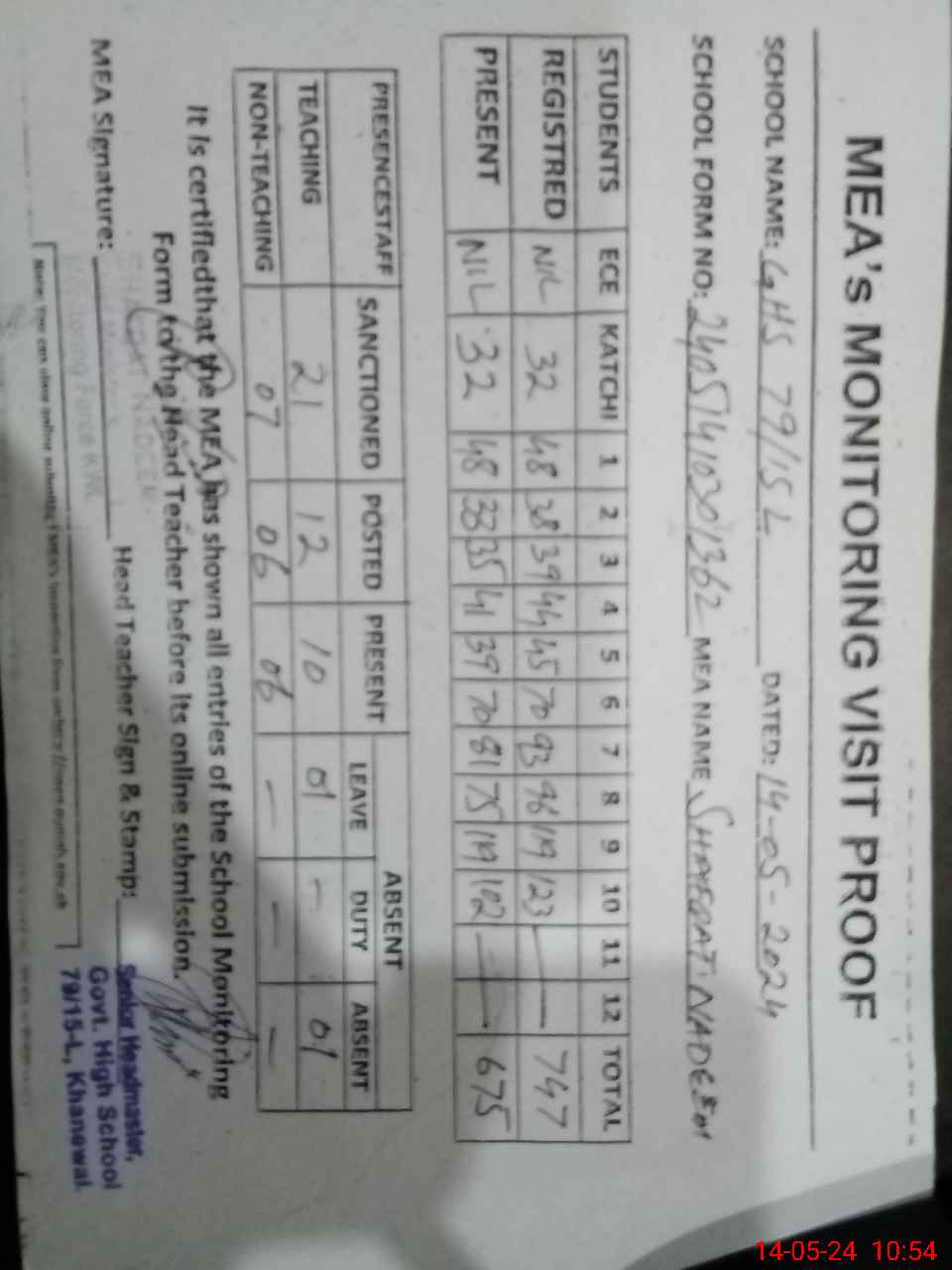 | EMIS Code: 36420652 | Name of School: GHS 79/15-L, KHANEWAL | |||