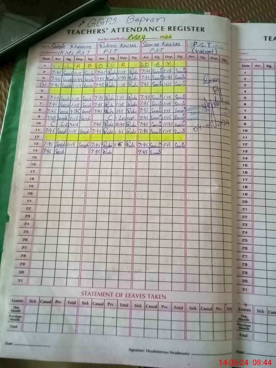 | Name: Sa**** Kh**** Designation: (School Headmaster's/Headmistress's) PST Phone/Cell Number: 03**** |