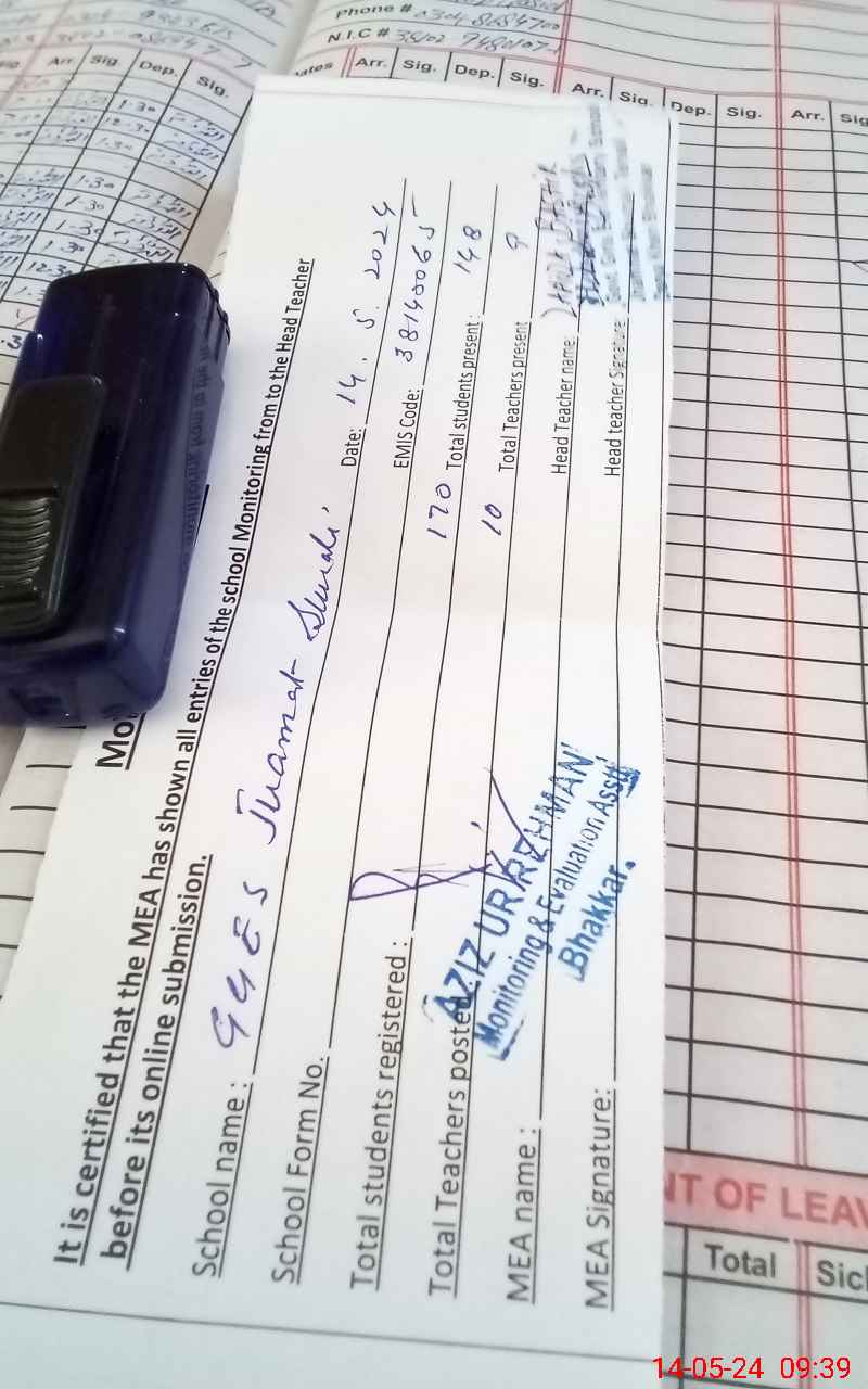 | Certified that this School was Inspected by the Undersigned MEA/DMO Today and the Information Stated Above is as Per Record. | |||||