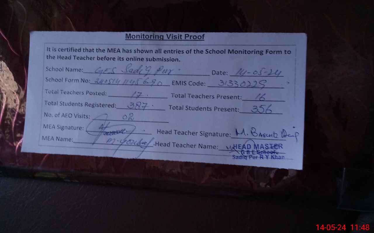 | EMIS Code: 31330229 | Name of School: GES SADIQ PUR | |||