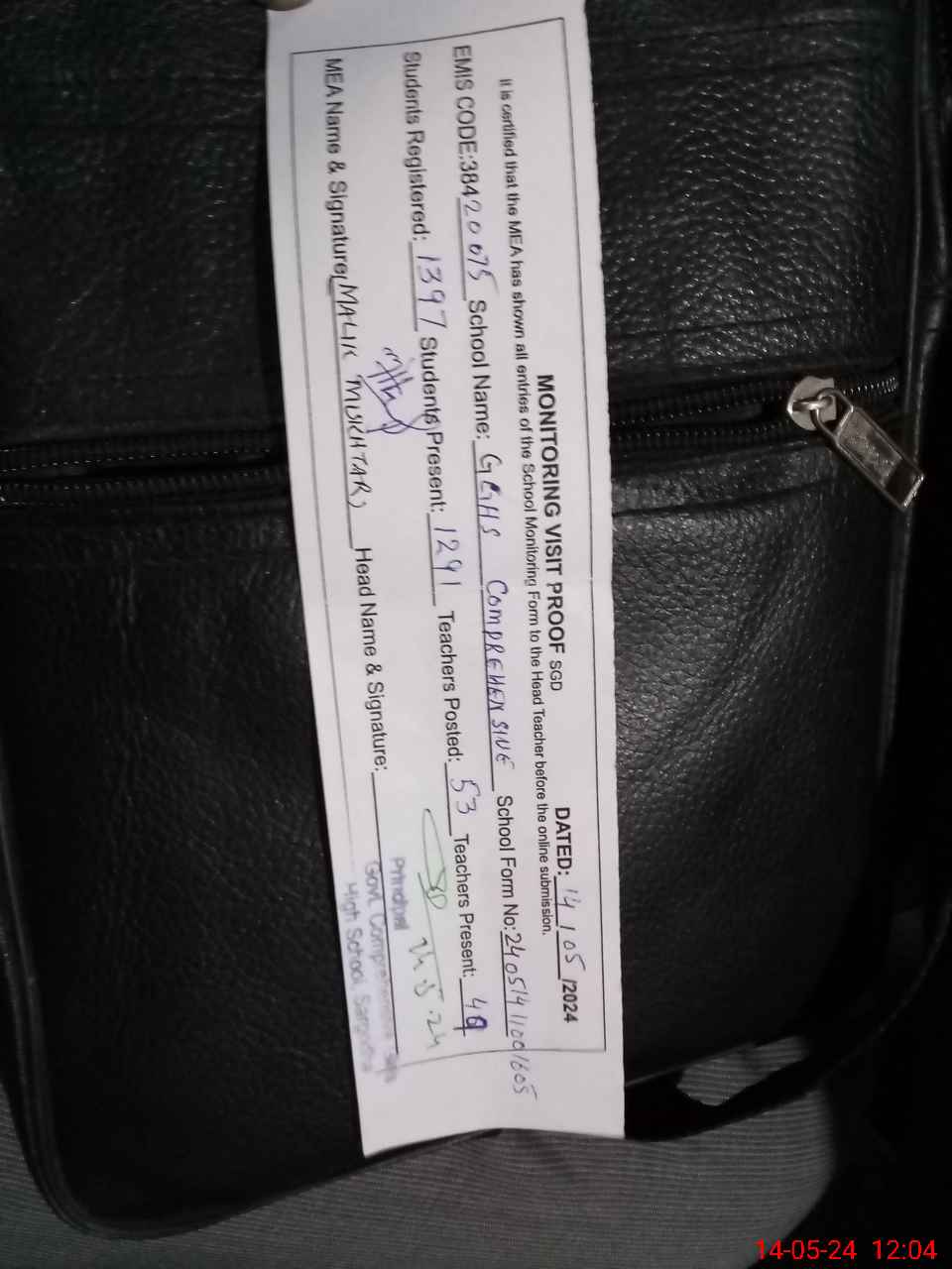 | Certified that this School was Inspected by the Undersigned MEA/DMO Today and the Information Stated Above is as Per Record. | |||||