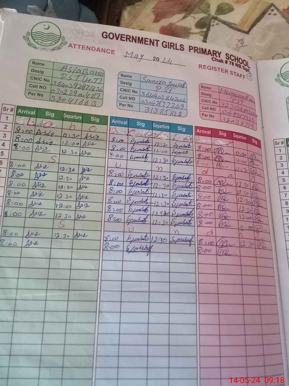 | Name: AS**** BA**** Designation: (School Headmaster's/Headmistress's) PST Phone/Cell Number: 03**** |