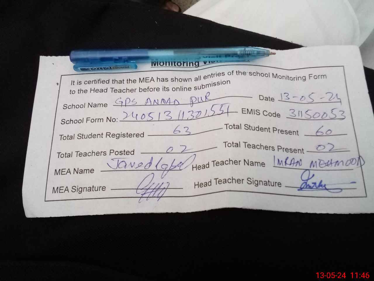 | Certified that this School was Inspected by the Undersigned MEA/DMO Today and the Information Stated Above is as Per Record. | |||||