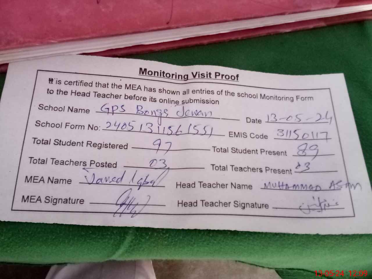 | EMIS Code: 31150117 | Name of School: GPS BONGA JEVAN | |||