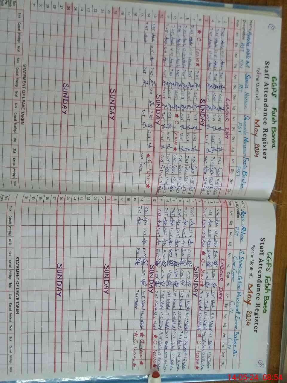 | Remarks (Use Separate Page if Required): C IV Babar Ali Absent from last 3 days approved leave now available | |||||