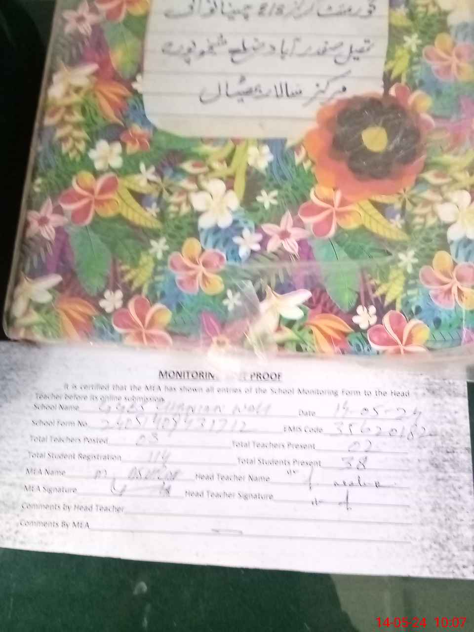 | EMIS Code: 35620182 | Name of School: GGES CHANIAN WALI | |||