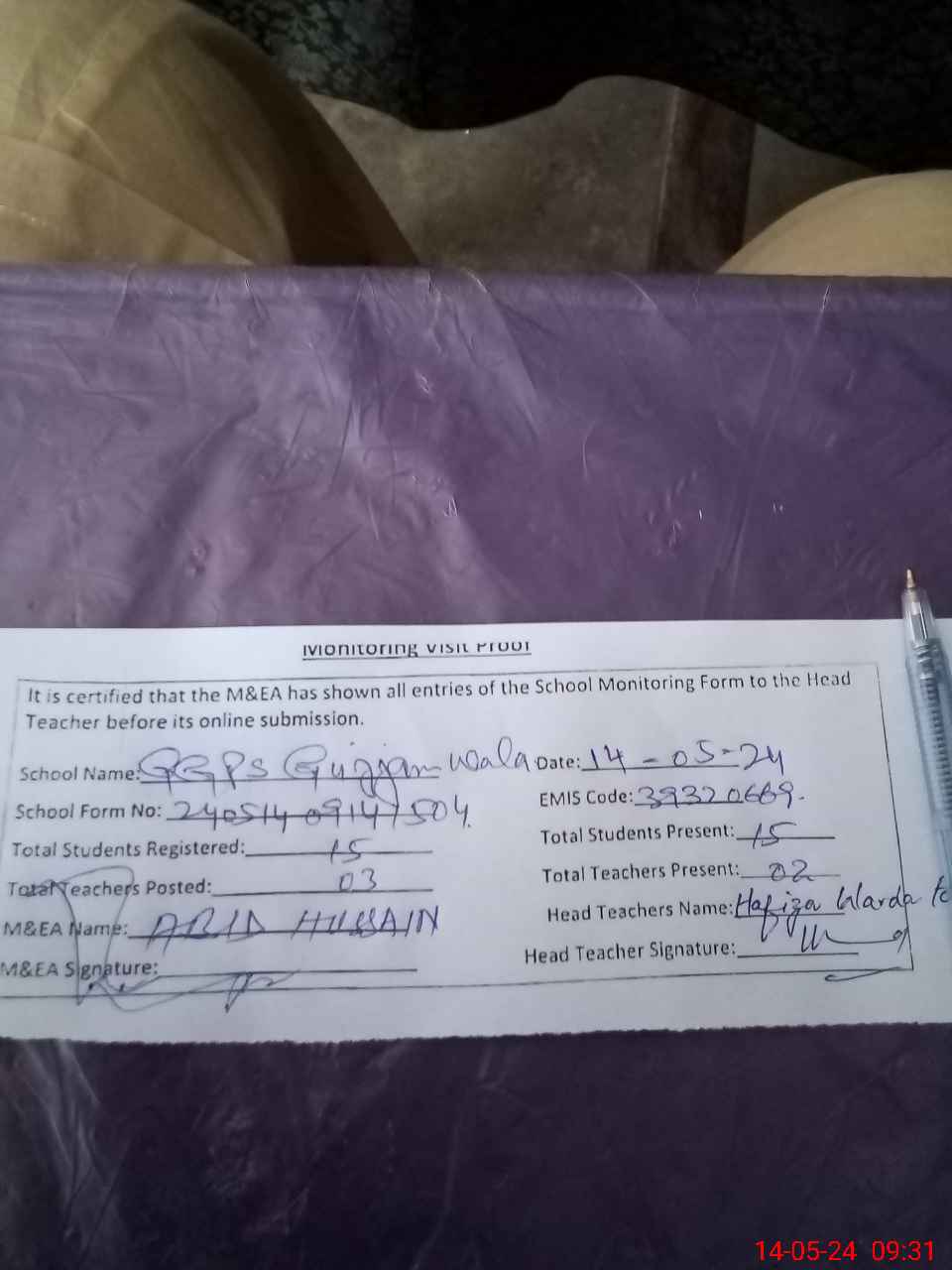 | EMIS Code: 39320669 | Name of School: GGPS GUJJAN WALA | |||