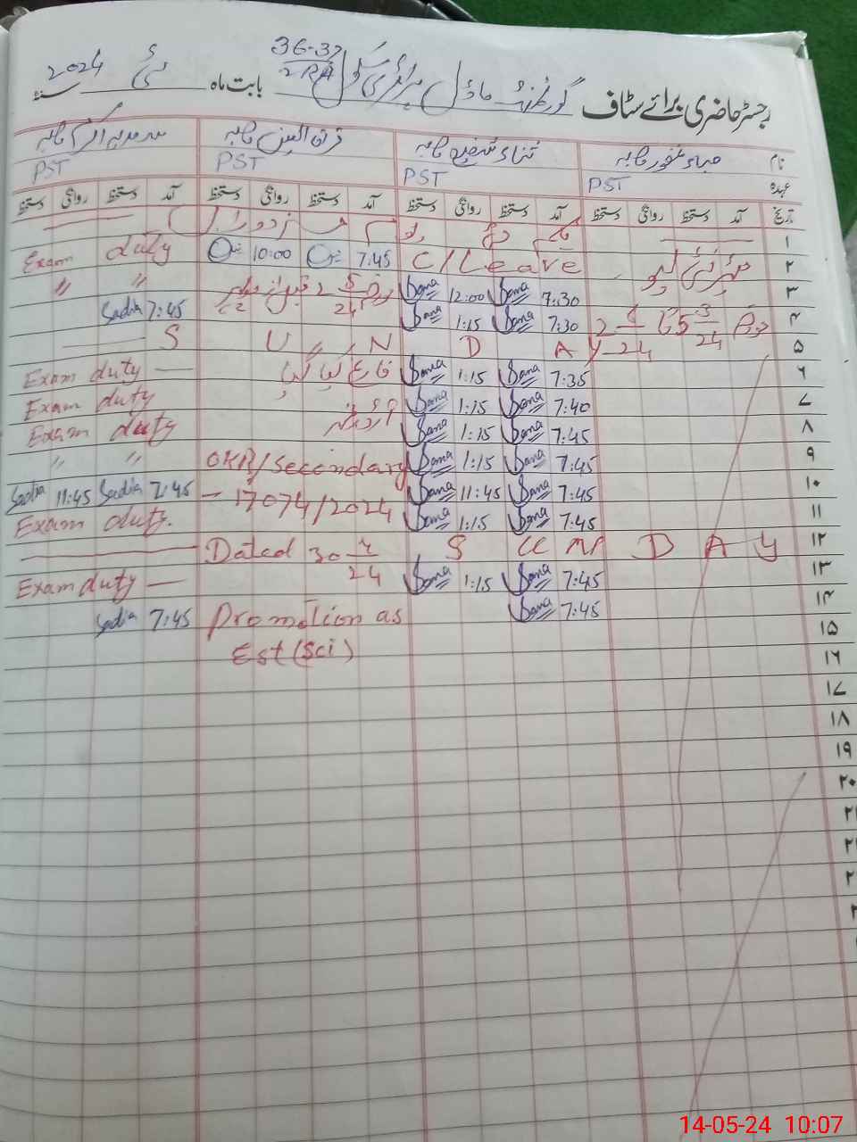 | 35**** | Sa**** Gh**** | PST | Regular | 30 | 0 | 0 | 30 | 0 | 0 | 0 | 0 | 0 | Maternity |