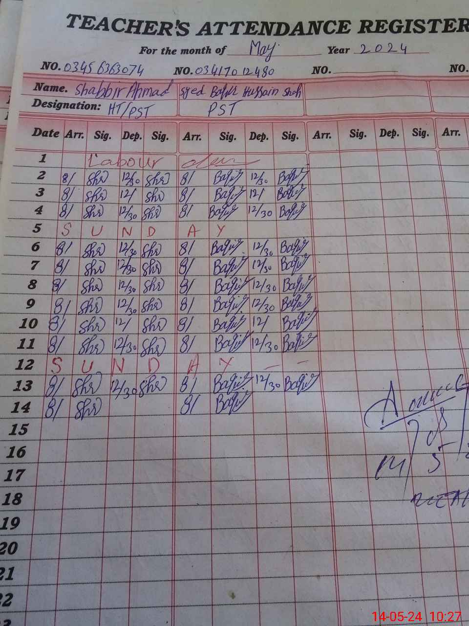 | Name: SH**** AH**** Designation: (School Headmaster's/Headmistress's) PST Phone/Cell Number: 03**** |
