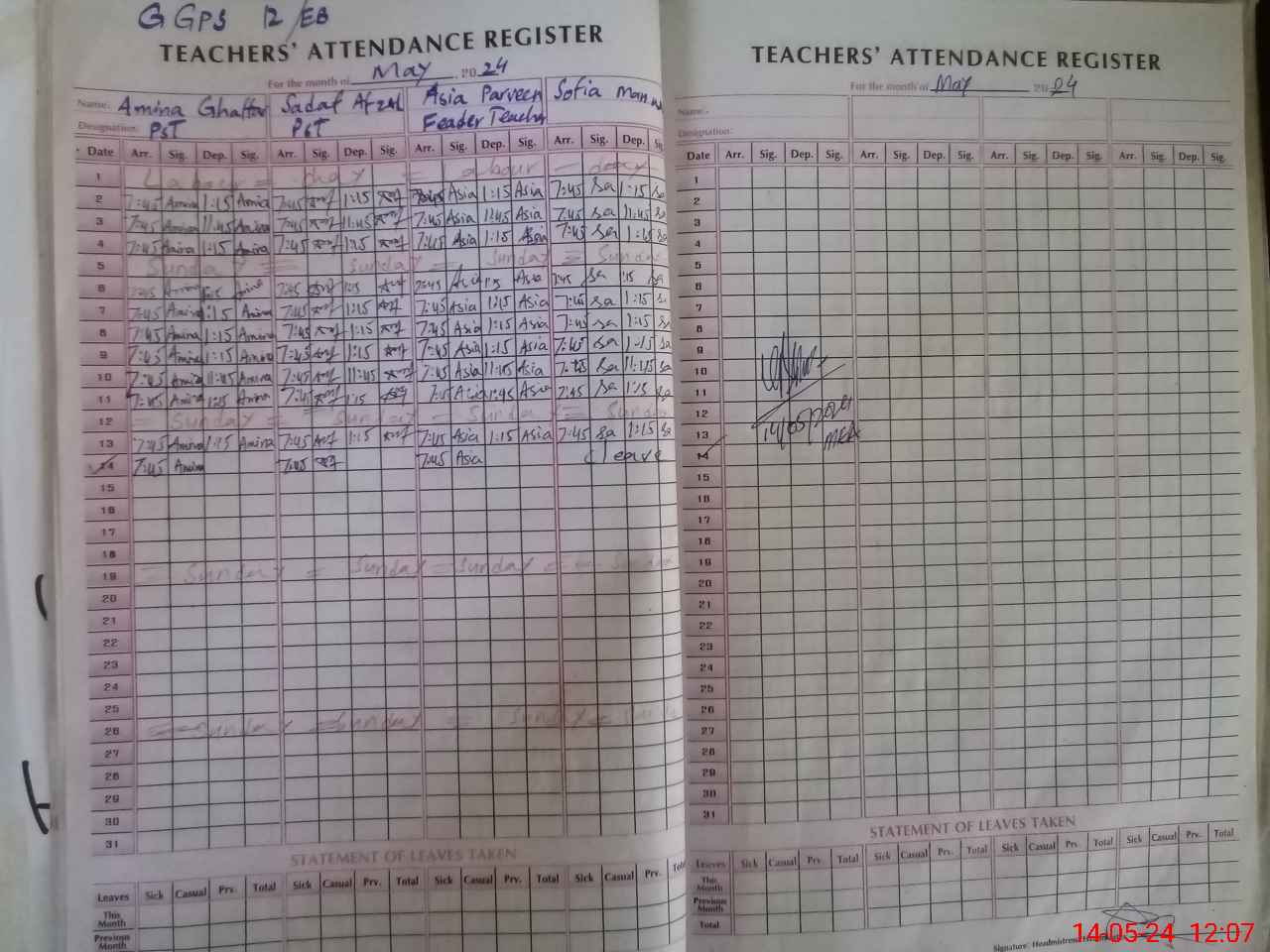| Name: AM**** GH**** Designation: (School Headmaster's/Headmistress's) PST Phone/Cell Number: 03**** |