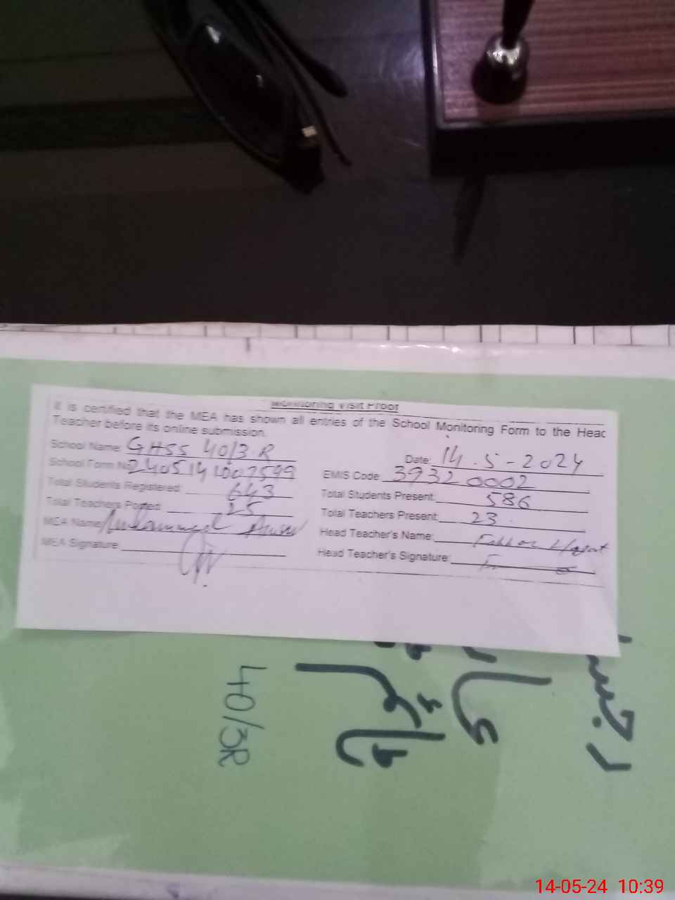 | EMIS Code: 39320002 | Name of School: GHSS 40/3.R OKARA | |||