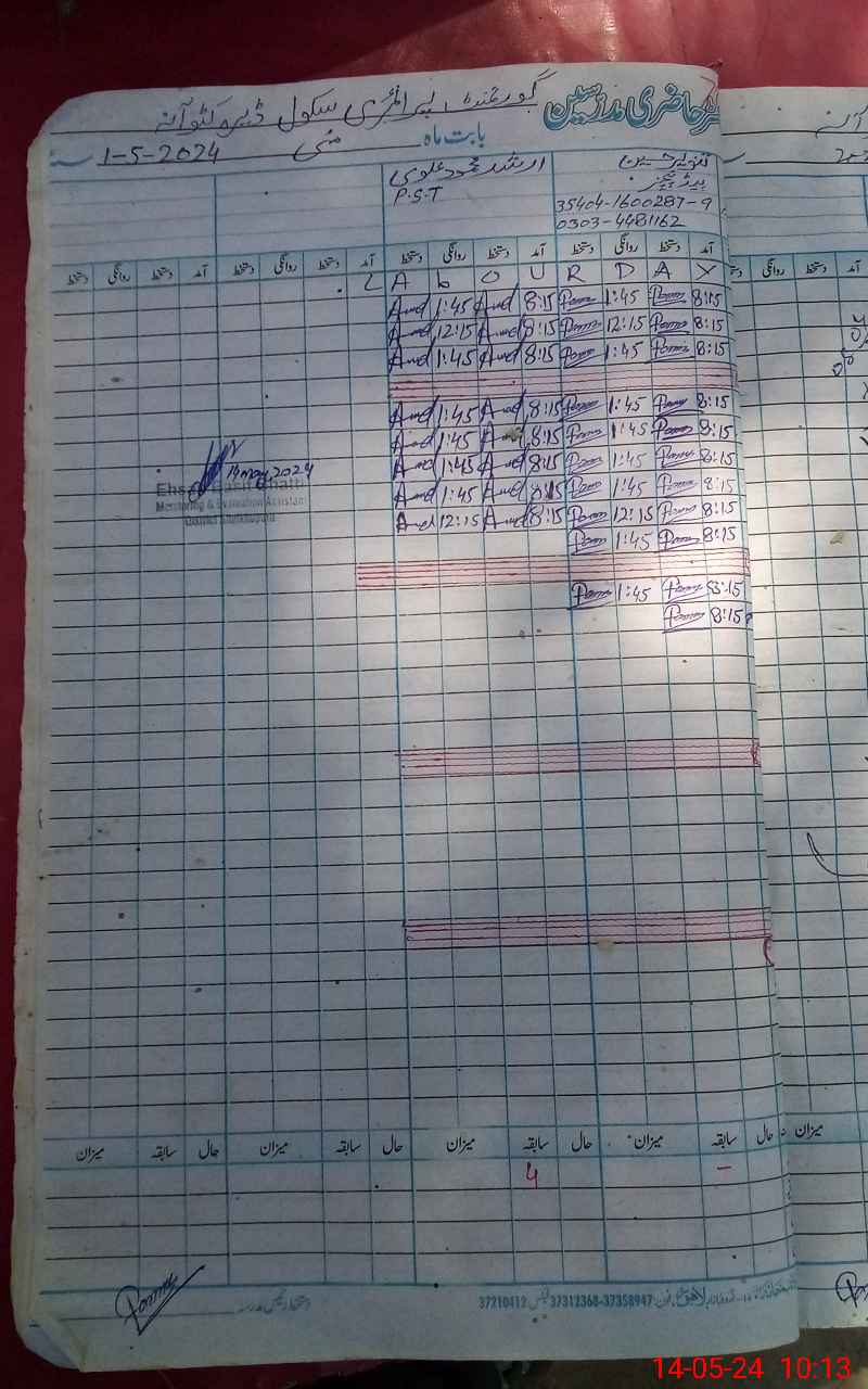 | Name: Ta**** Hu**** Designation: (School Headmaster's/Headmistress's) PTC Phone/Cell Number: 03**** |