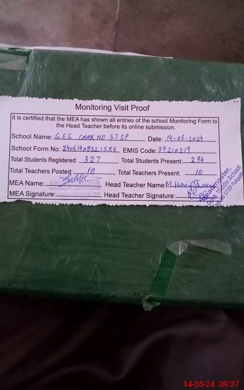 | EMIS Code: 39210219 | Name of School: GES CHAK NO. 57 SP | |||