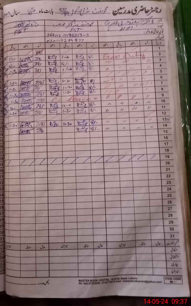 | 36**** | Sh**** Al**** Ta**** | 1 | 0 | 13 | 0 | 0 | 0 | 0 | 0 | 0 | 0 | Exam Duty | |