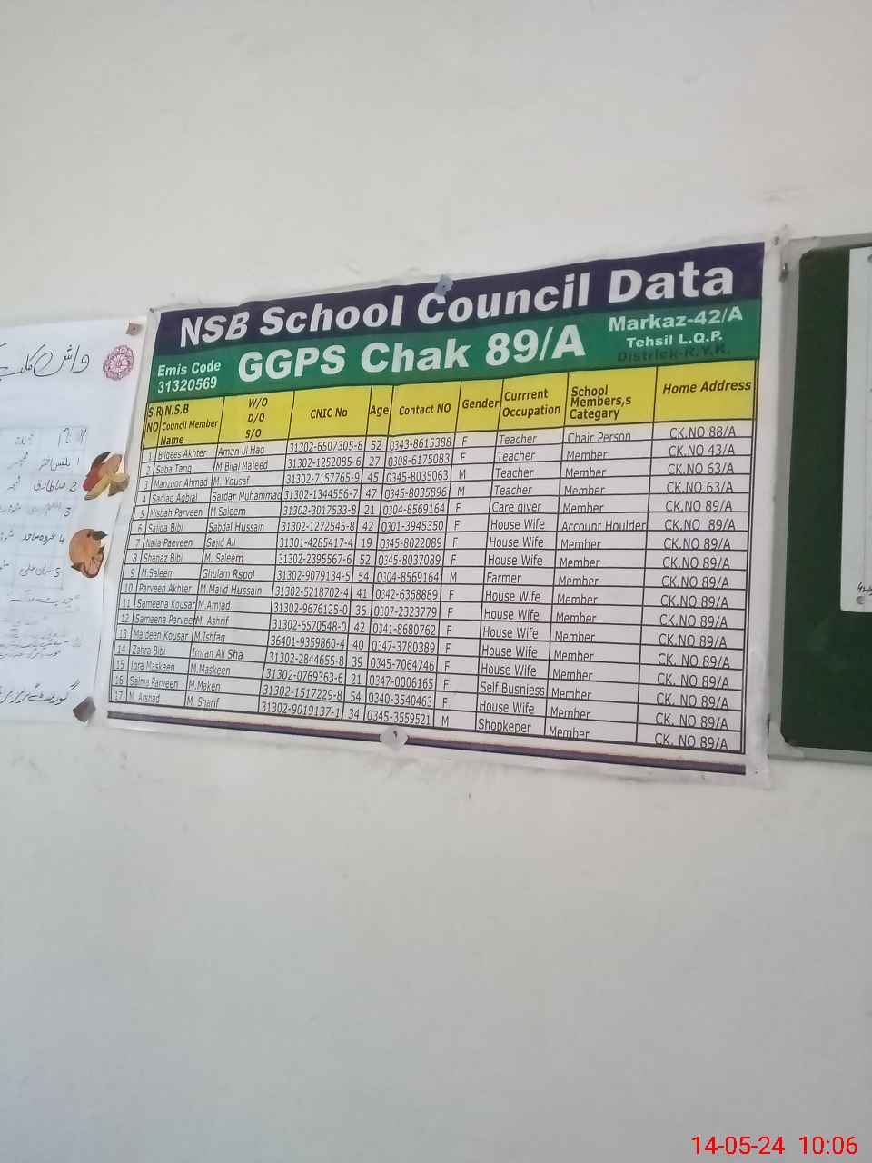 | EMIS Code: 31320569 | Name of School: GGPS CHAK NO 89/A | |||