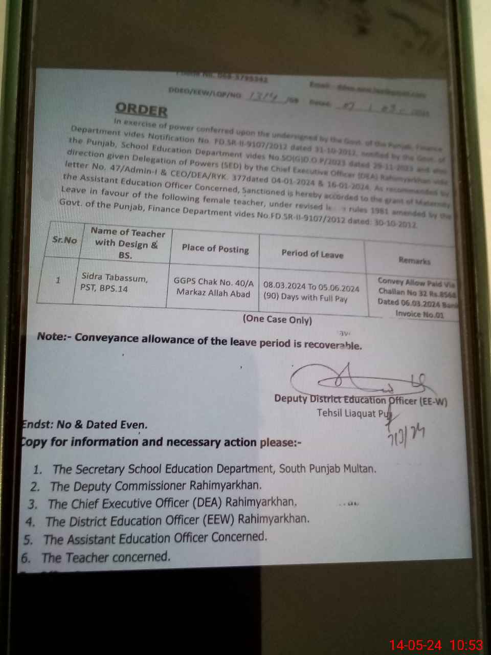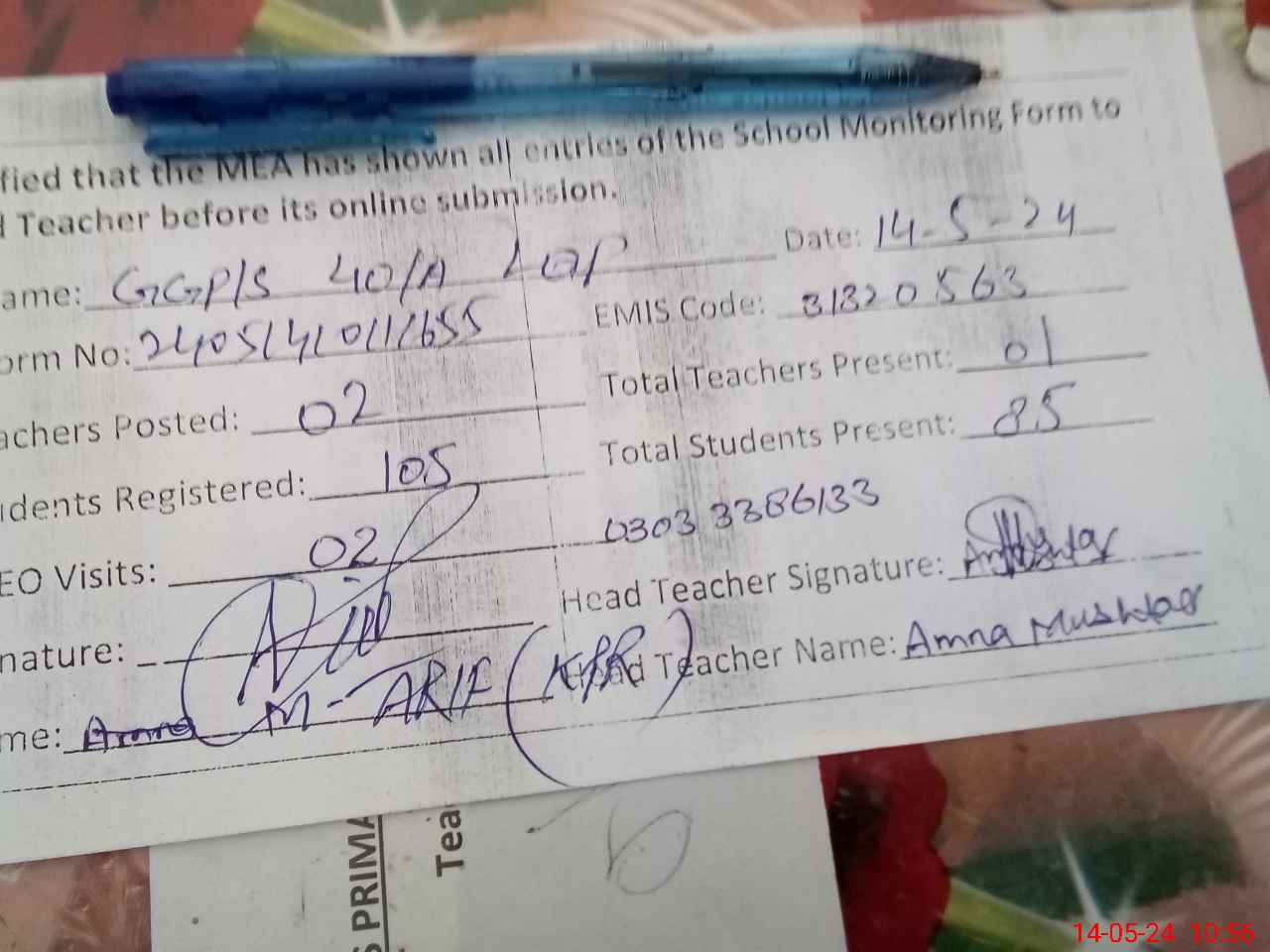 | Name: AM**** MU**** Designation: (School Headmaster's/Headmistress's) PST Phone/Cell Number: 03**** |