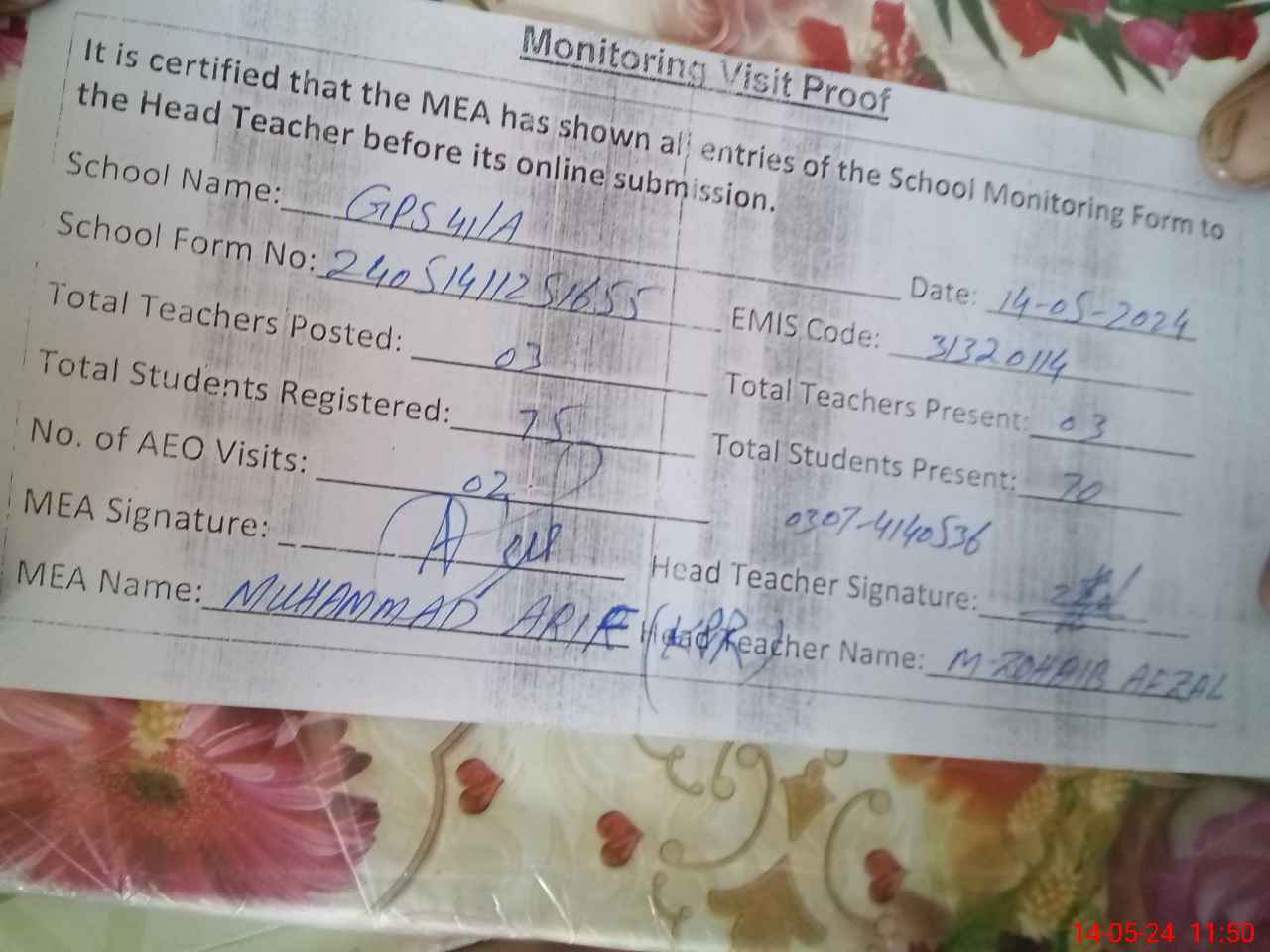 | EMIS Code: 31320114 | Name of School: GPS CHAK 41/A | |||
