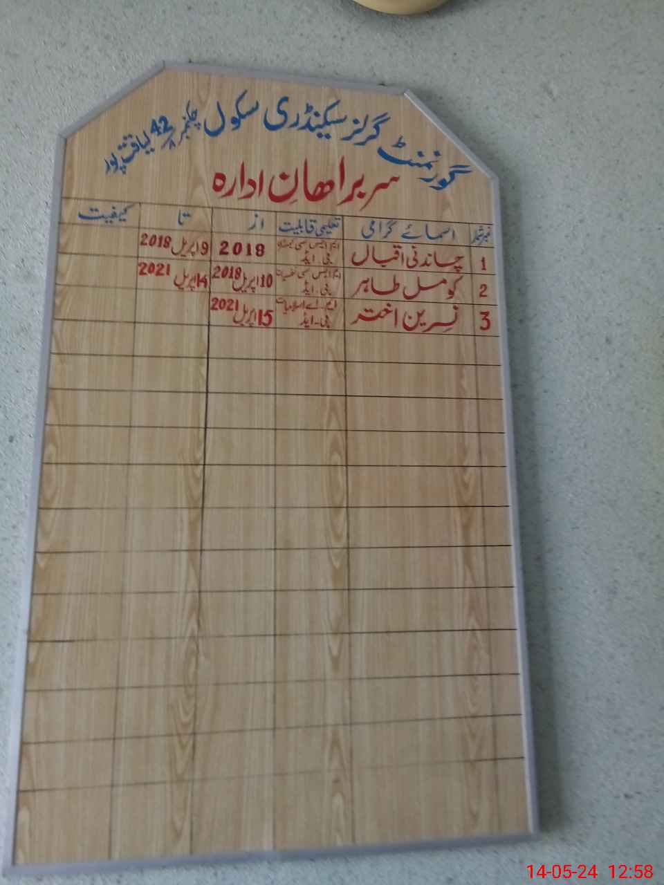 | Name: NA**** AK**** Designation: (School Headmaster's/Headmistress's) S S T(Gen) Incharge Phone/Cell Number: 03**** |