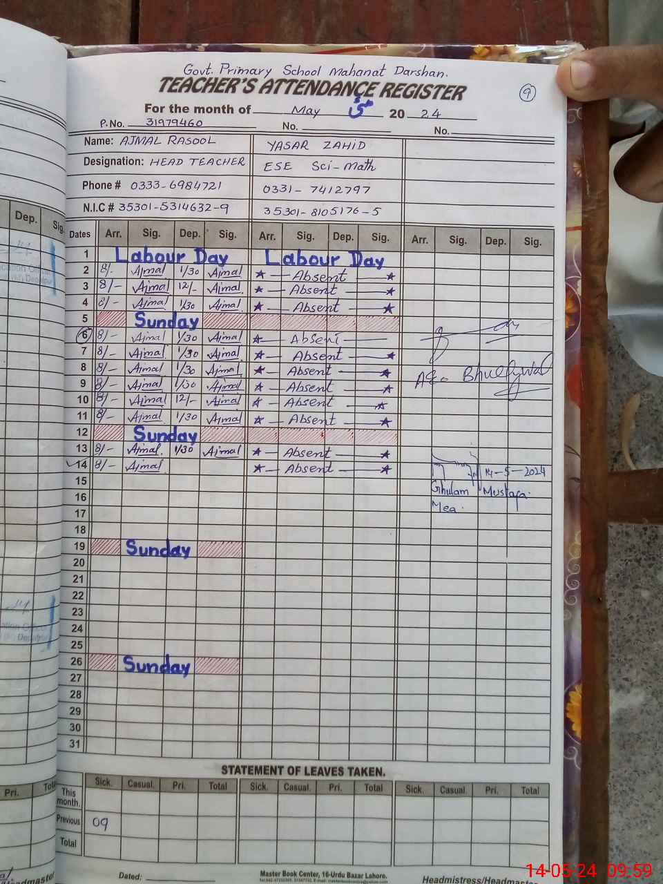 | Name: AJ**** RA**** Designation: (School Headmaster's/Headmistress's) PST Phone/Cell Number: 03**** |
