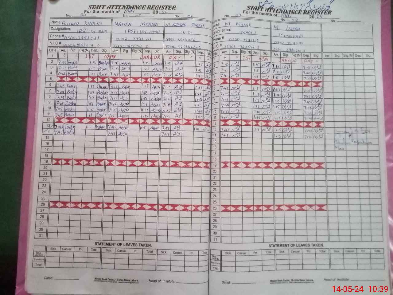 | CNIC | Full Name | Designation | R/C | Absence During Last Calender Month |