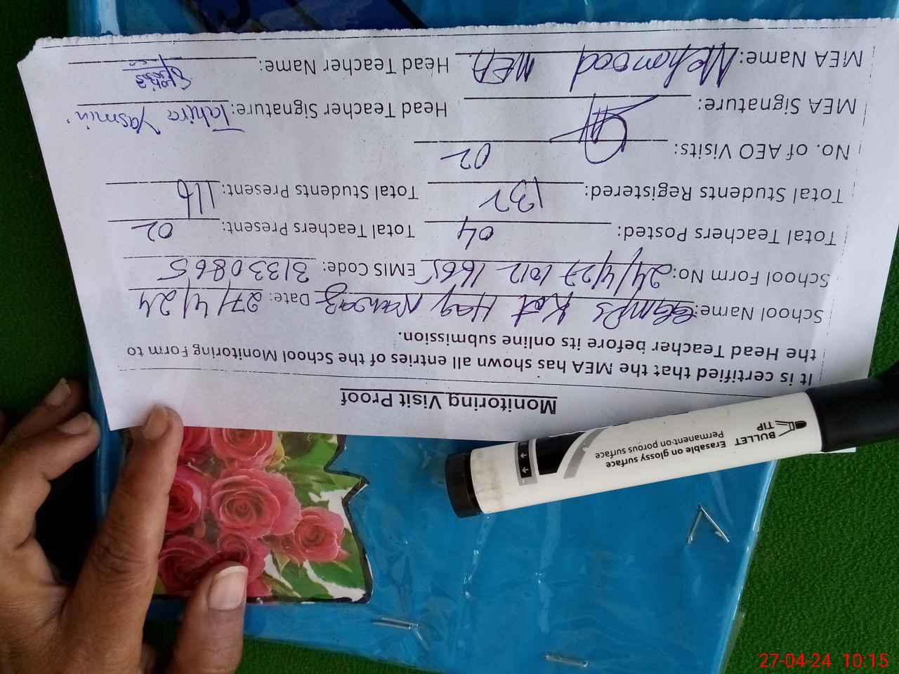 | Attendance Register | Head Teacher | MEA with School | Visit Proof |