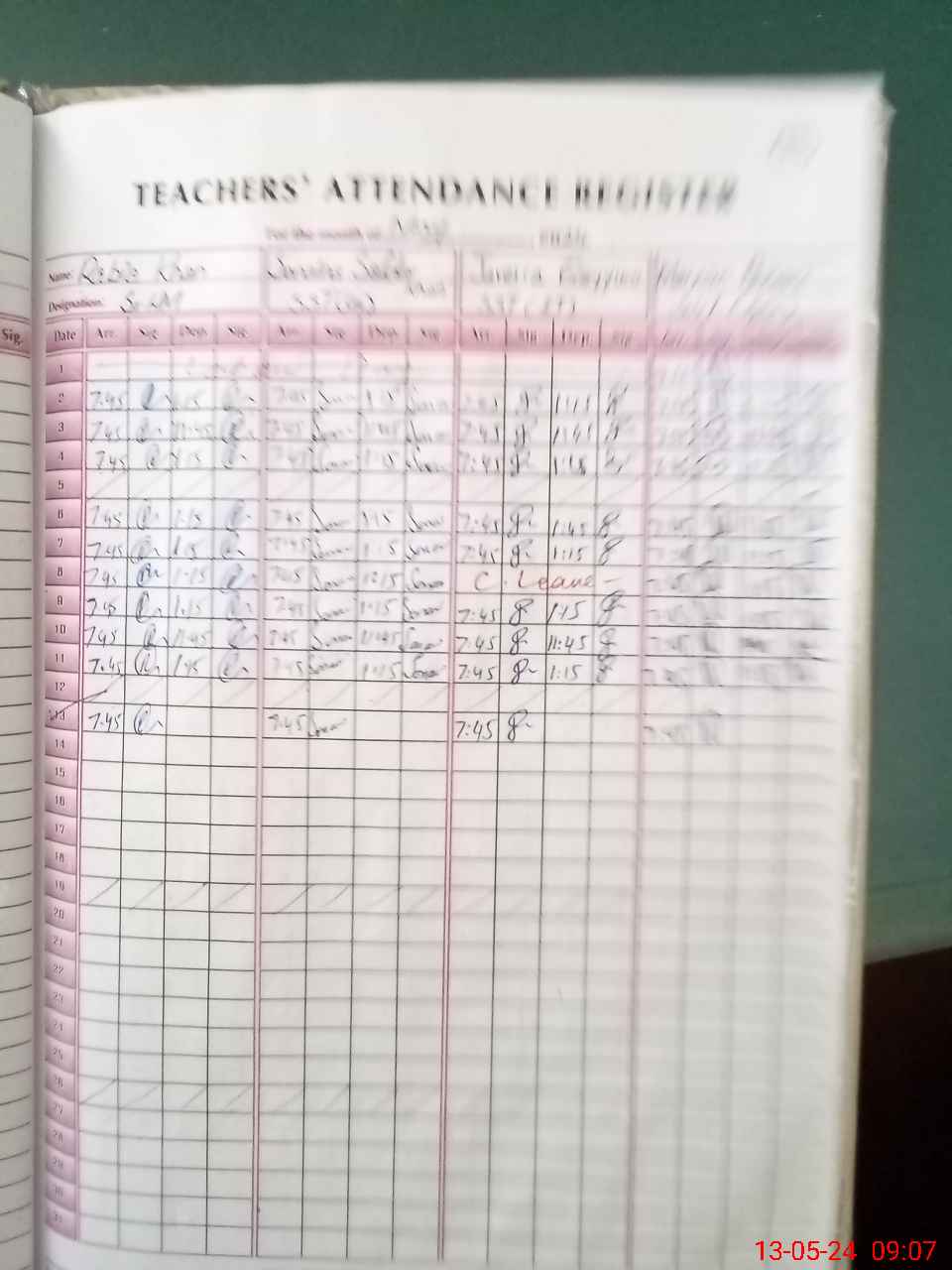| CNIC | Full Name | Designation | R/C | Absence During Last Calender Month |