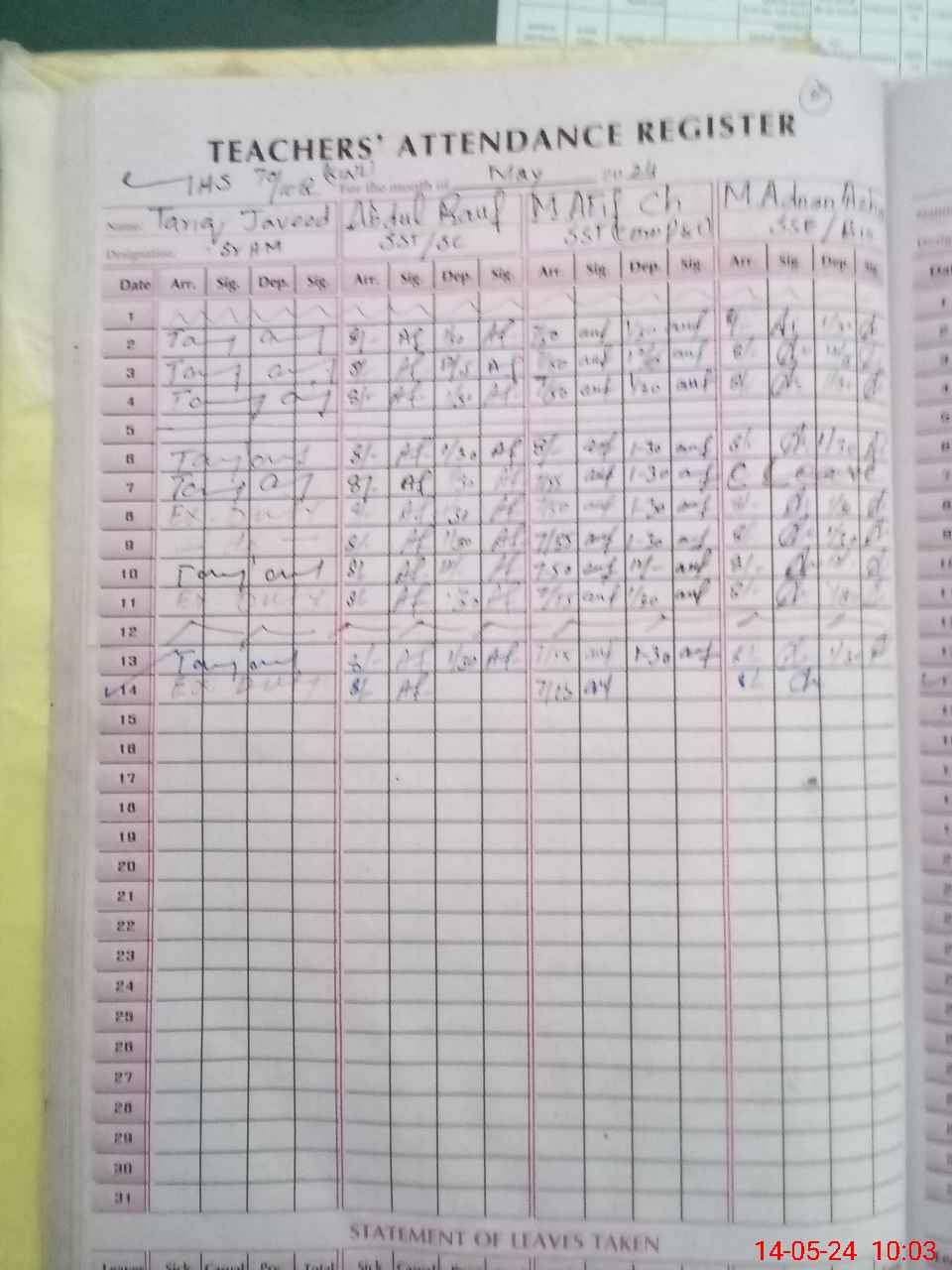 | 36**** | Ta**** Ja**** | 10 | 1 | 0 | 0 | 0 | 0 | 0 | 0 | 0 | 0 | 0 | Exam Duty |