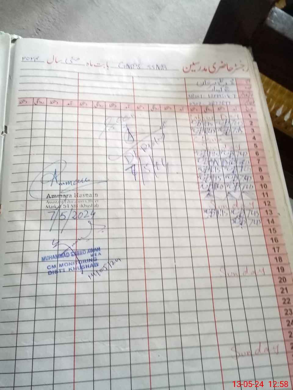 | CNIC | Full Name | Designation | R/C | Absence During Last Calender Month |