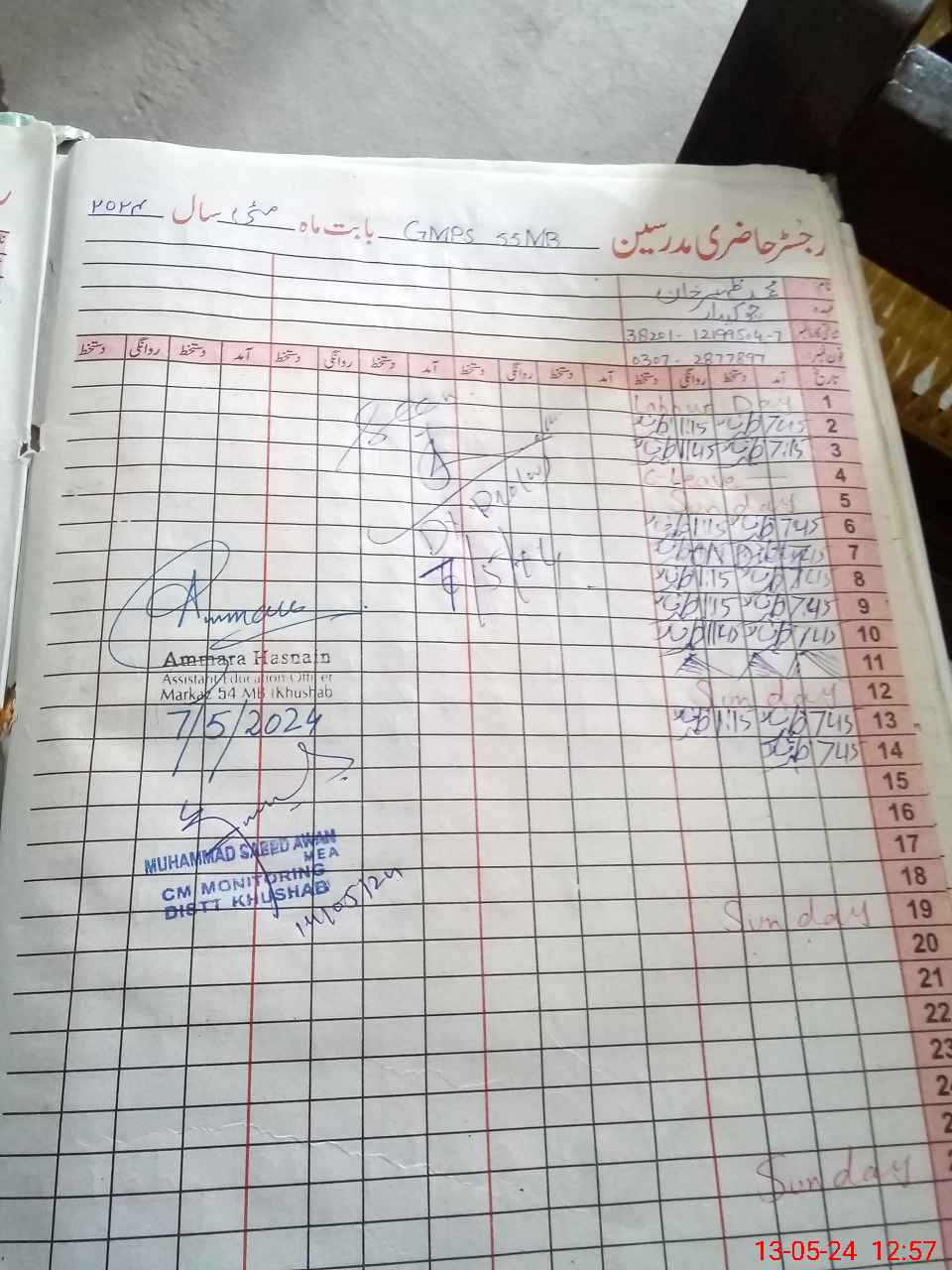 | Name: Sa**** Mo**** Designation: (School Headmaster's/Headmistress's) Est Phone/Cell Number: 03**** |