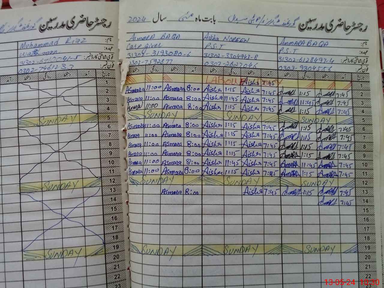 | CNIC | Full Name | Designation | R/C | Absence During Last Calender Month |