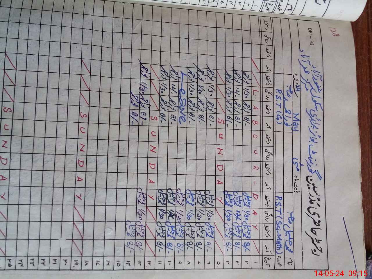 | CNIC | Full Name | Designation | R/C | Absence During Last Calender Month |