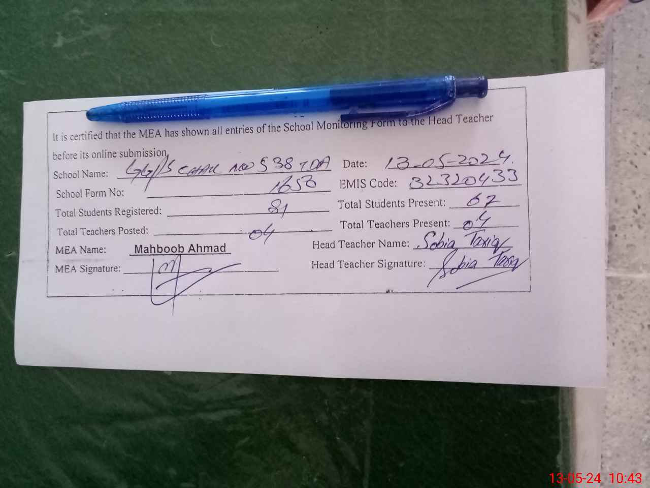 | EMIS Code: 32320433 | Name of School: GGPS CHAK NO. 538 TDA | |||