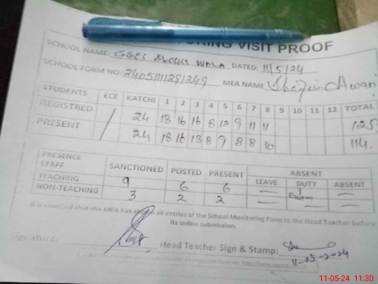 | EMIS Code: 36410511 | Name of School: GGES BLOCKI WALA, NAWAN SHEHR | |||