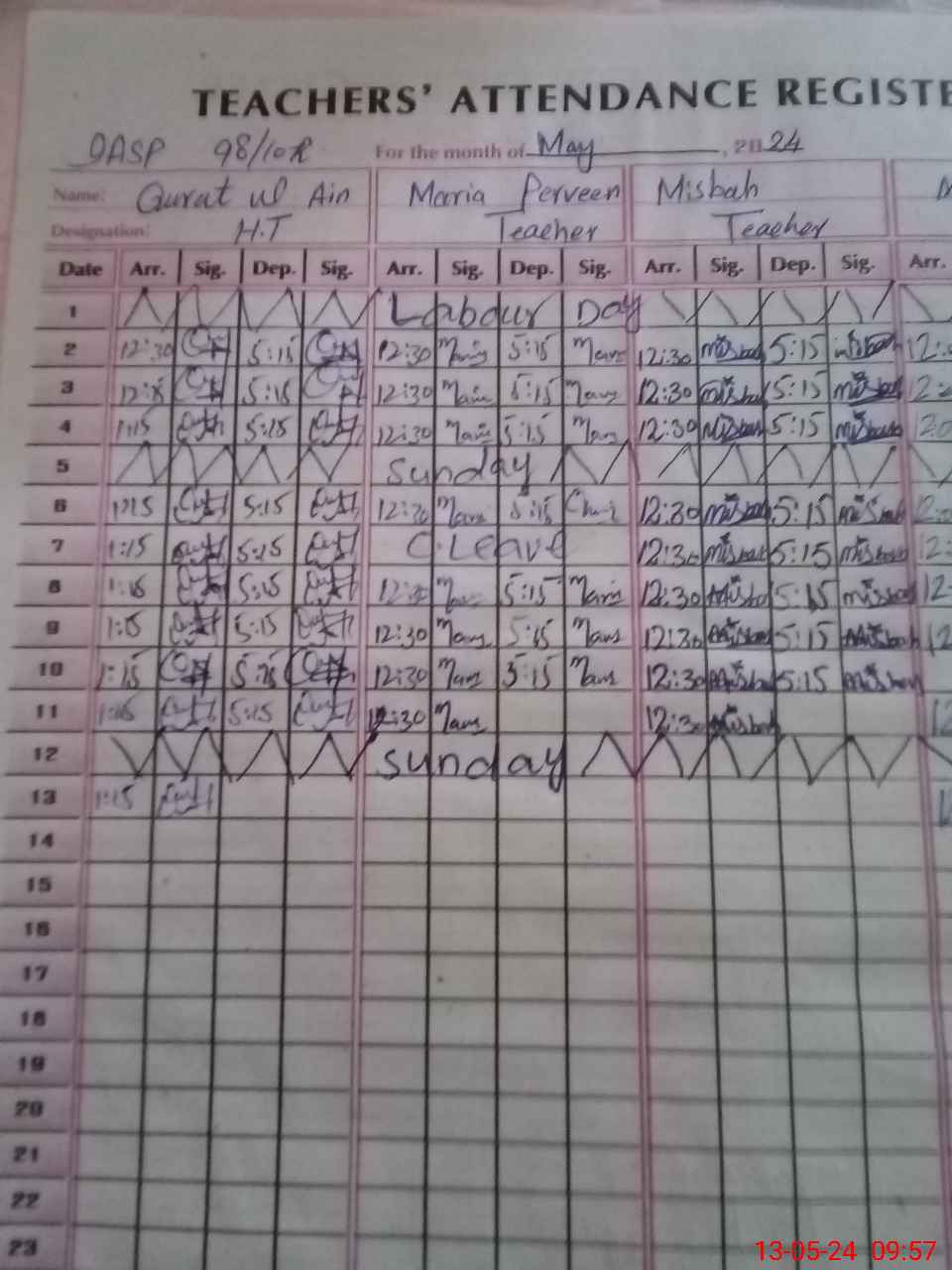 | CNIC | Full Name | Designation | R/C | Absence During Last Calender Month |