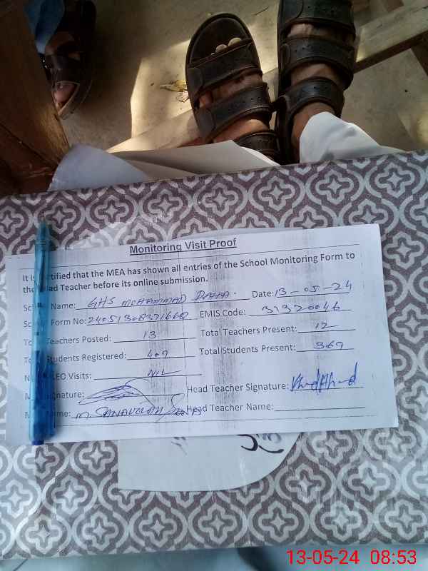 | EMIS Code: 31320046 | Name of School: GHS MUHAMMAD DAHA | |||