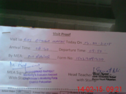 | Attendance Register | Head Teacher | MEA with School | Visit Proof |