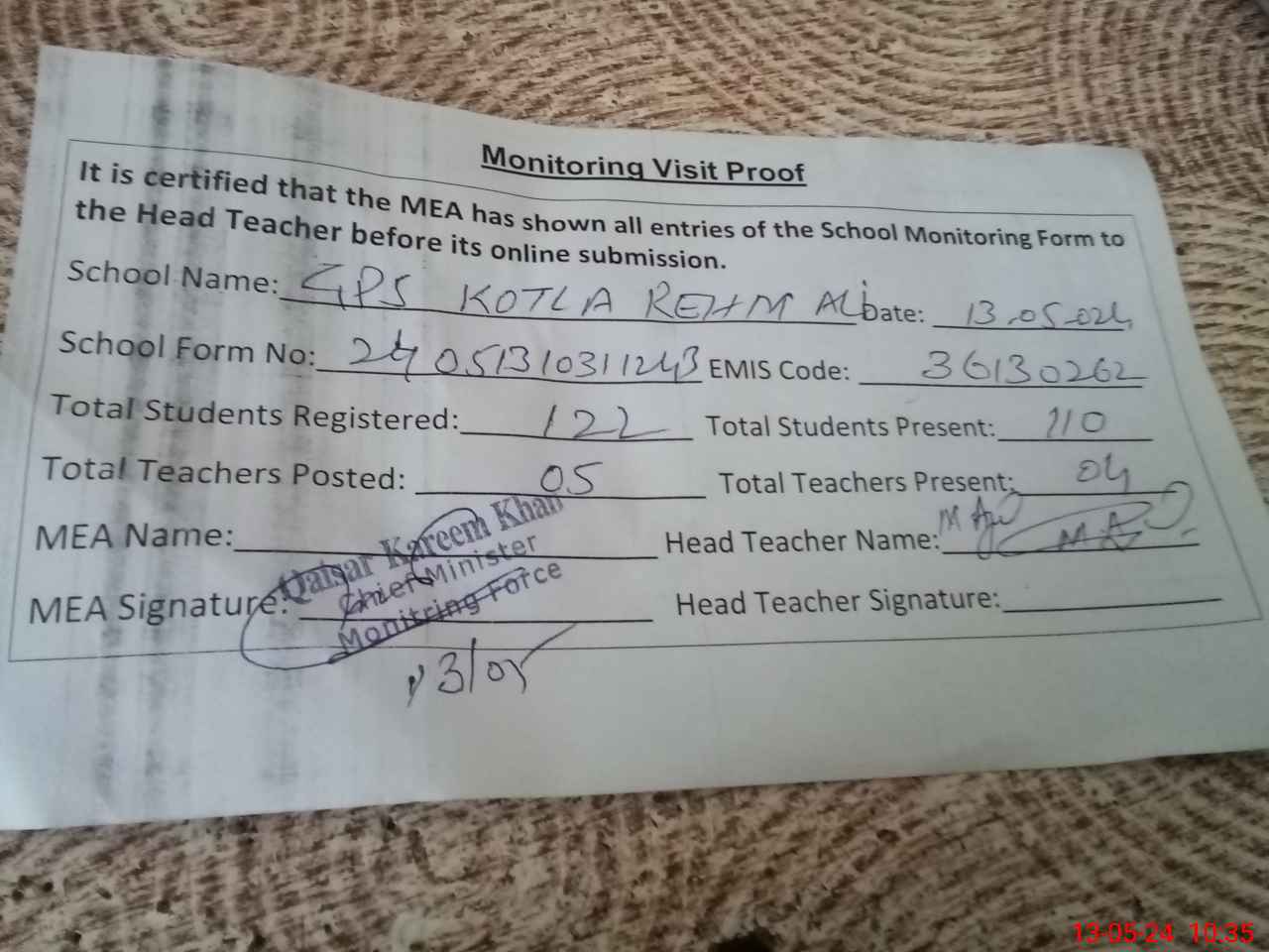 | EMIS Code: 36130262 | Name of School: GPS KOTLA RAHAM ALI LAR MULTAN | |||