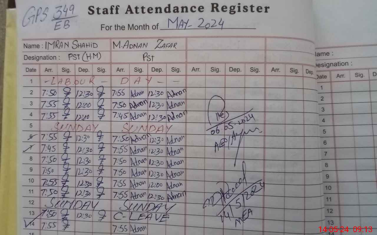 | Name: IM**** SH**** Designation: (School Headmaster's/Headmistress's) PST Phone/Cell Number: 03**** |