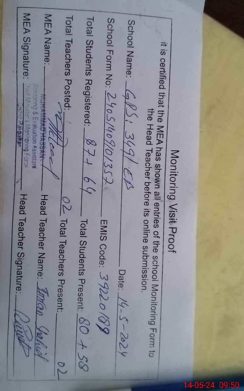 | EMIS Code: 39220189 | Name of School: GPS 349 EB | |||