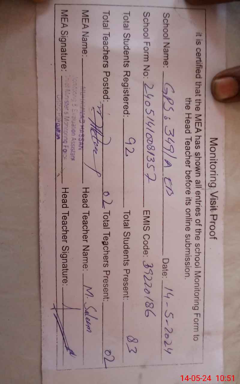 | EMIS Code: 39220186 | Name of School: GPS 349 A EB | |||