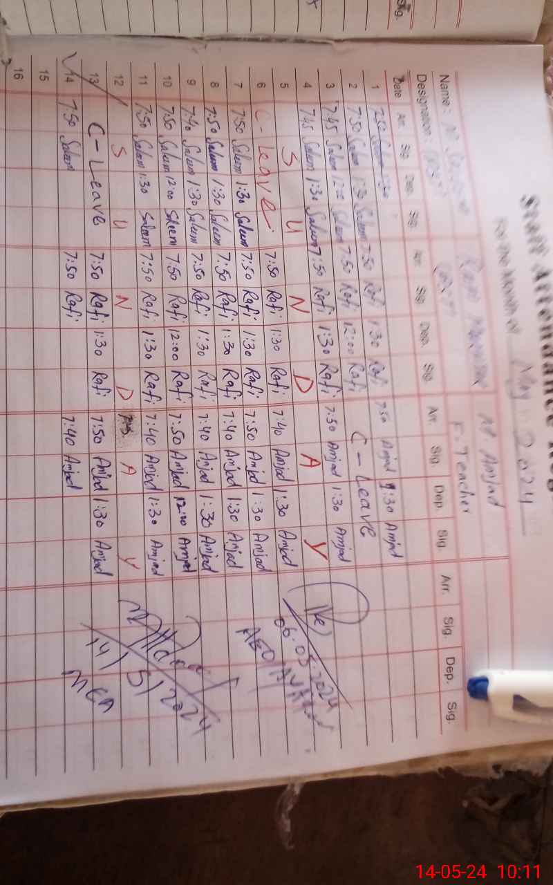 | CNIC | Full Name | Designation | R/C | Absence During Last Calender Month |