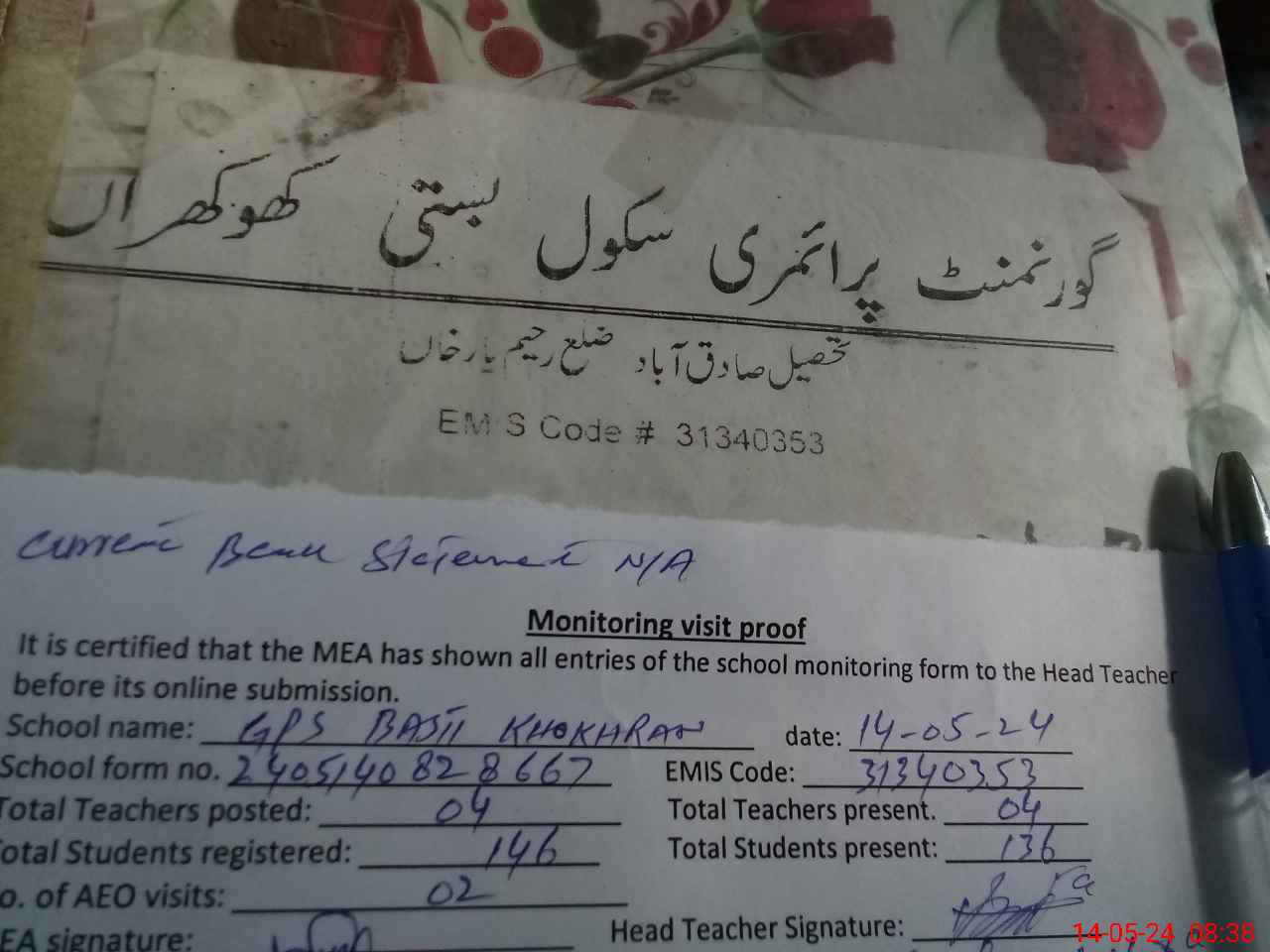 | EMIS Code: 31340353 | Name of School: GPS BASTI KHOKHRAN | |||